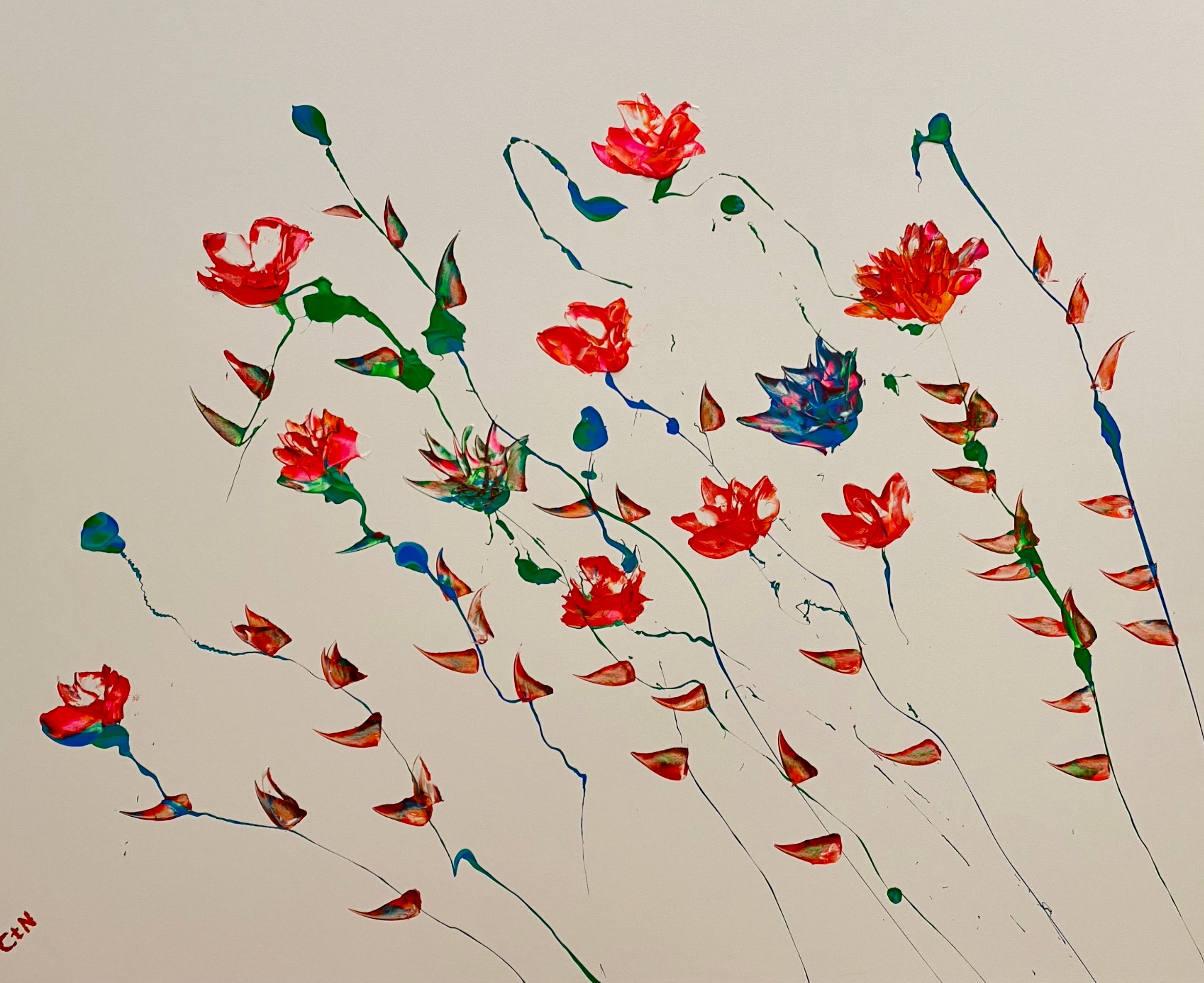 Ronny Cameron pittura astratta forme di iuta e carta in rosa blu scuro e bianco
