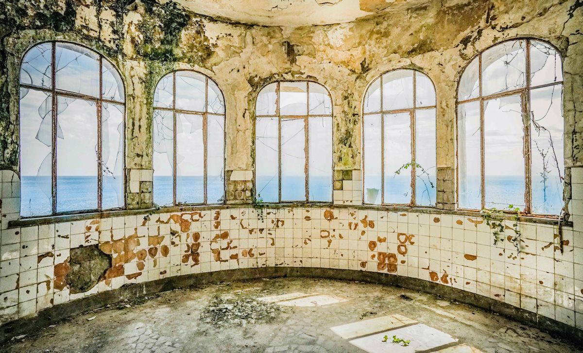 Georgia Ortner Photography luogo perduto L'ancien Casino vecchio e fatiscente vista sulle finestre