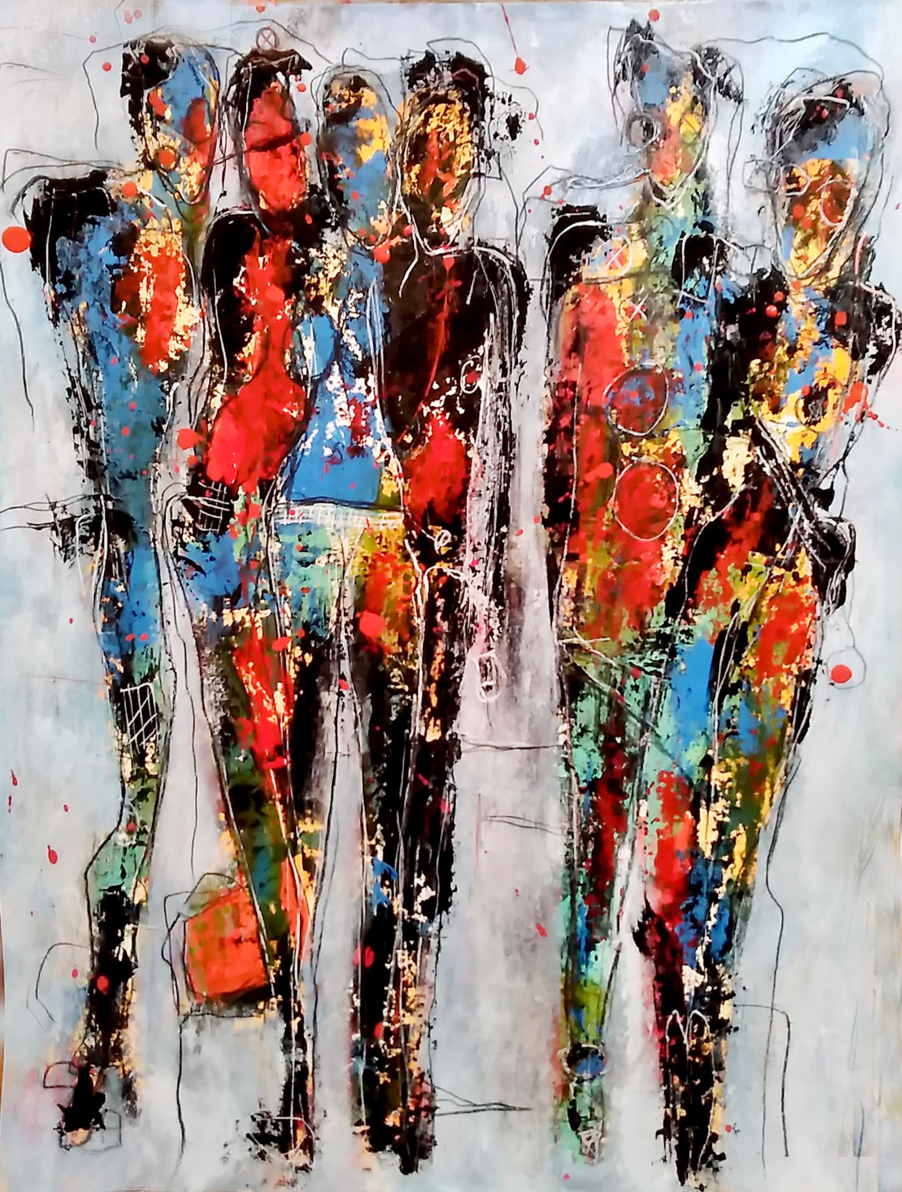 Artista:Tecnica:Acrilico, pastello su cartaMateriale:Acrilico | CartaInformazioni sull'opera d'arte:L'opera mostra persone che si incontrano in città ed è realizzata prevalentemente con i colori rosso, nero e blu. Sono state utilizzate anche matite colorate. L'opera mostra un approccio figurativo, anche se può essere sicuramente classificata come semi-astratta. L'opera consente una libera interpretazione e ognuno vede ciò che vuole vedere.Formato: