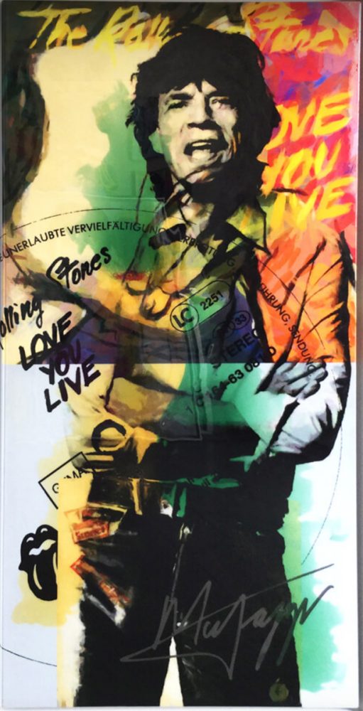 Jürgen Kuhl pittura astratta serigrafia Mick Jagger sovrapposizione Rolling Stones vinile tipografia