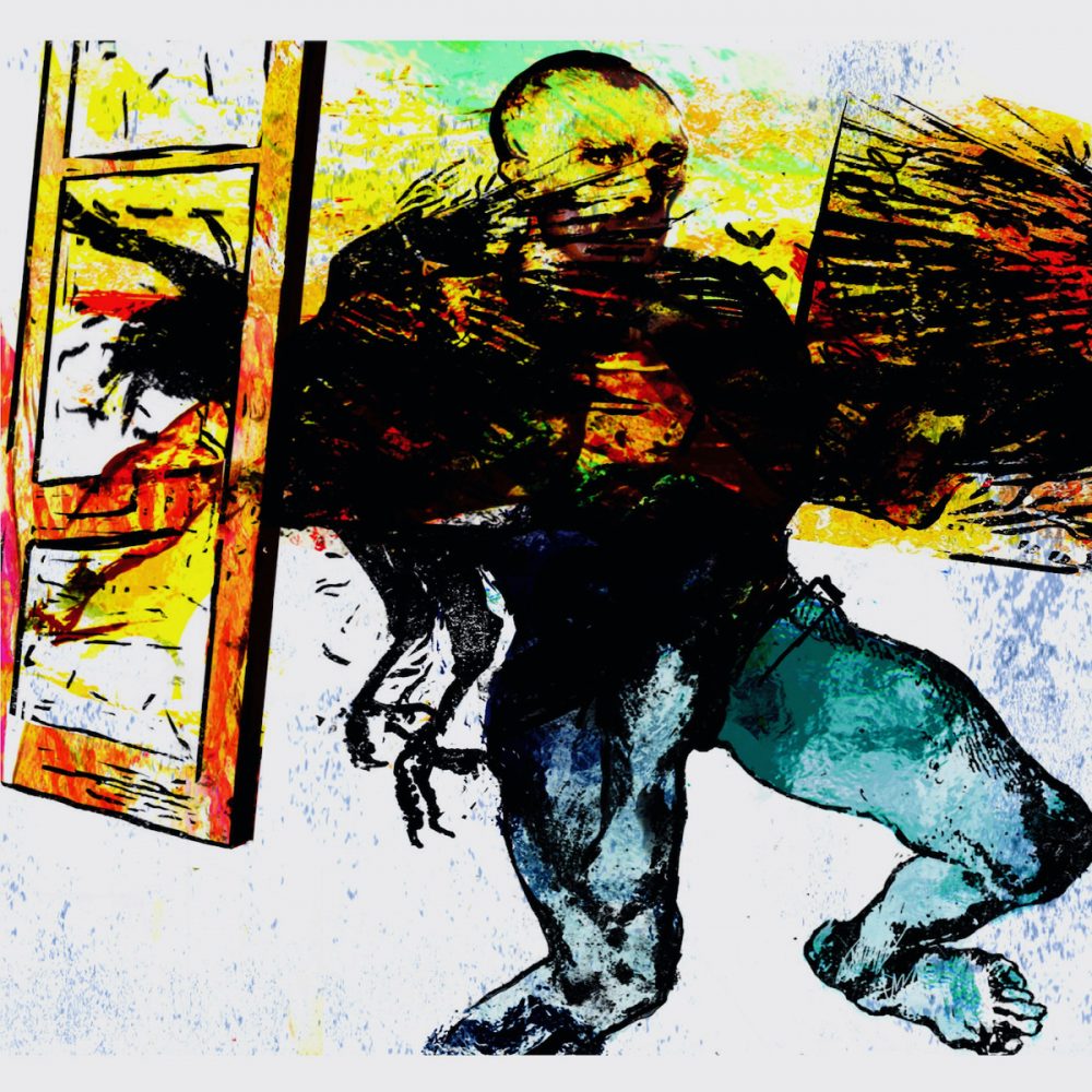 Klaus Heckhoff pittura astratta illustrazione van Gogh con gambe muscolose scoppia