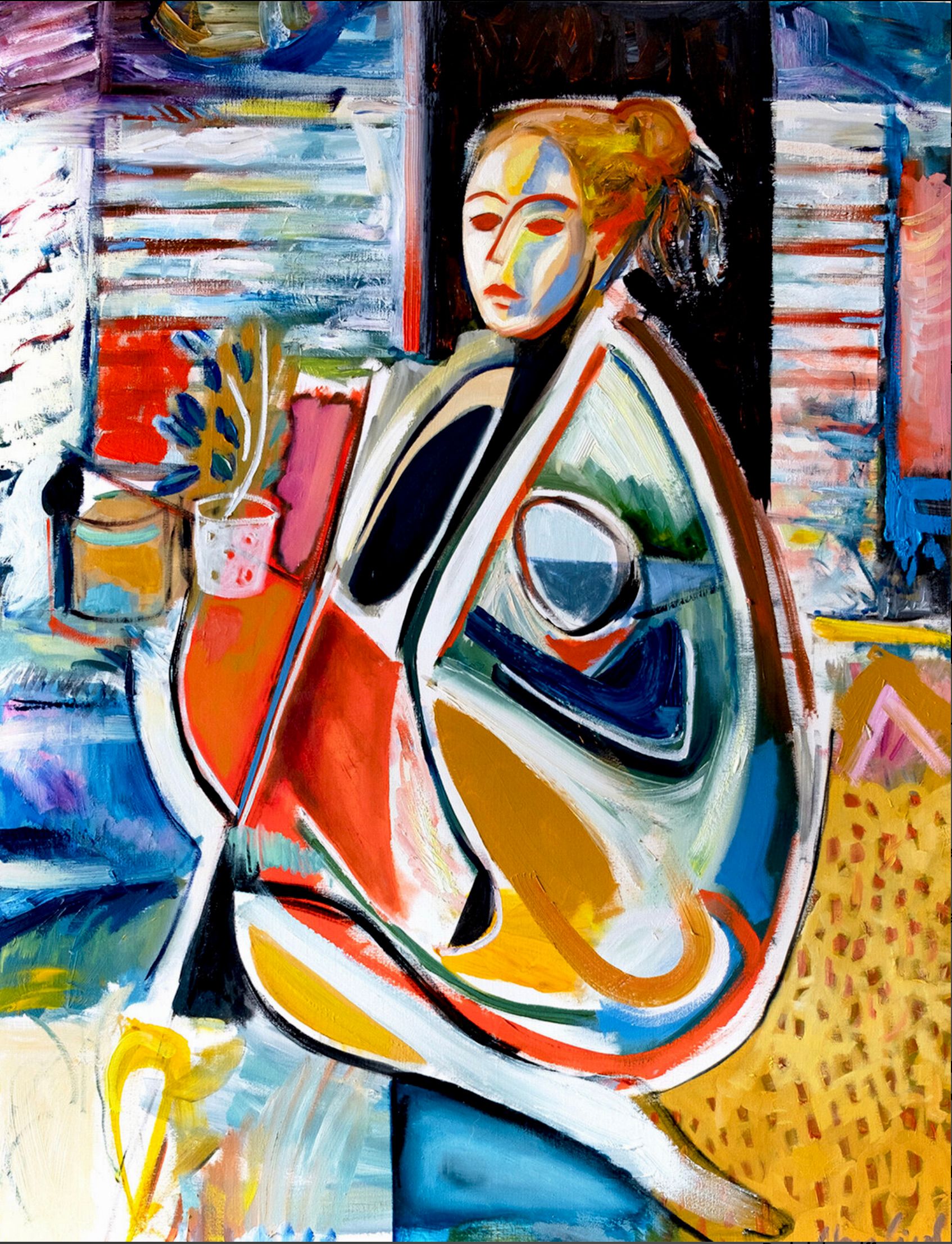 Artista:Tecnica:Olio su telaMateriale:Acrilico | TelaInformazioni sull'opera d'arte:Quadro astratto di una ragazza sullo sfondo di oggetti in uno studio artistico. Una giovane modella in forme geometriche e combinazioni di colori aggressivi con accenti rossi.Formato: