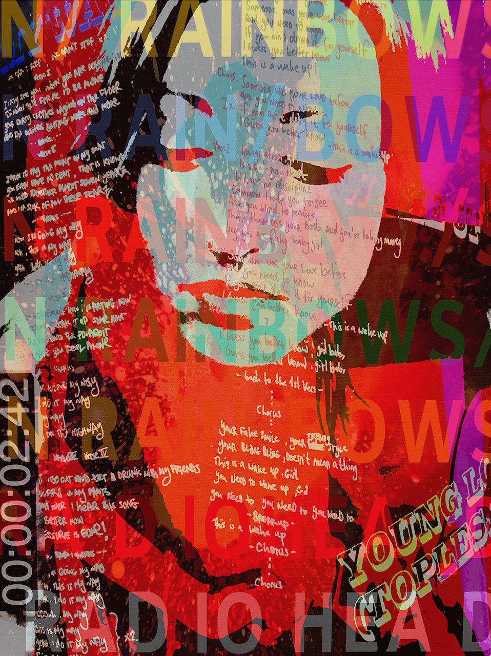 Artista:Tecnica:Ritratto digitale scattato, alienato in più fasi e dipinto digitalmente, uso di ritagli dalla copertina del CD, Foto+Collage=PhotollageMateriale:Stampa fotografica reale dietro vetro acrilico lucidoInformazioni sull'opera d'arte:emptyFormato: