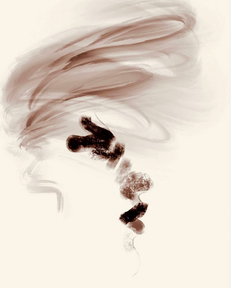 Zoko disegno digitale volto astratto di profilo con capelli senza contorno